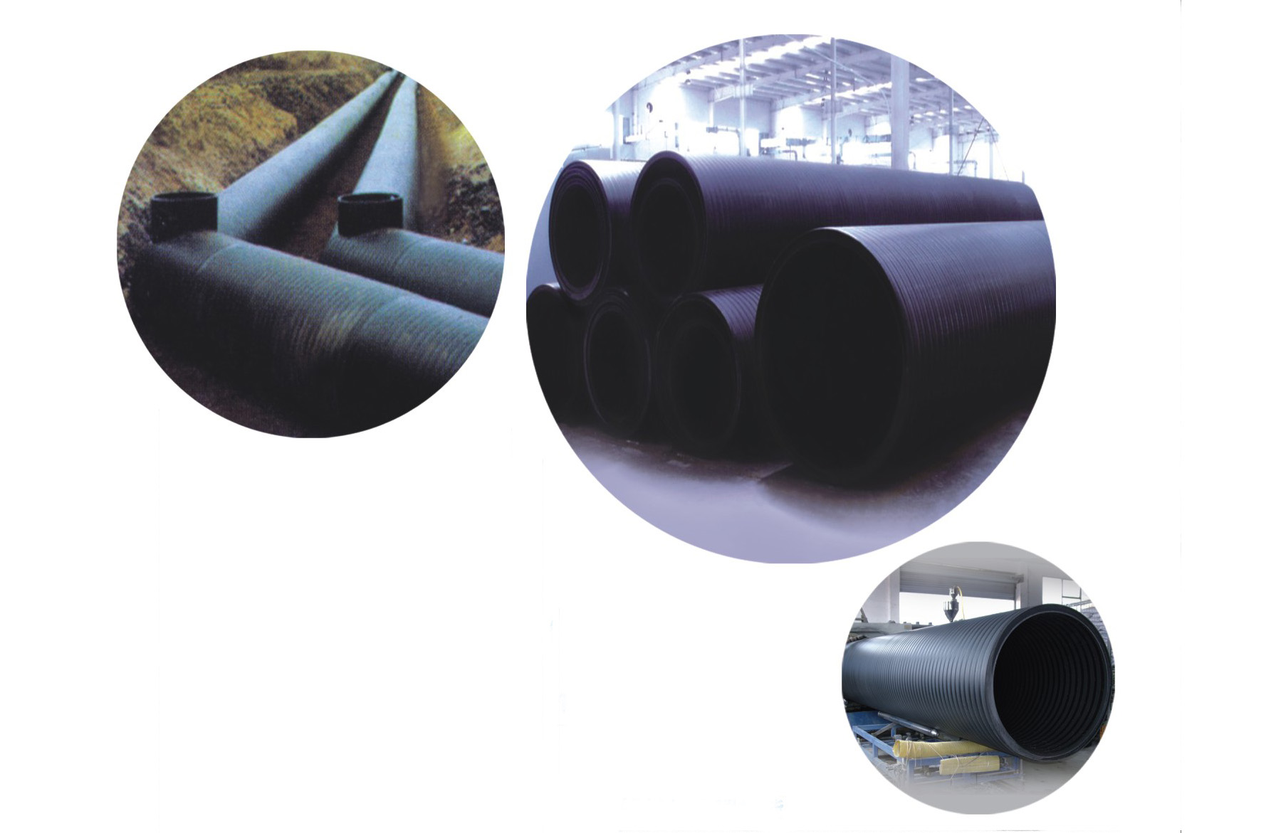 大口径中空壁缠绕管以高密度聚乙烯(HDPE)为原料,通过注塑机挤出长方体带材,再经过缠绕成型工艺制成的全塑柔性结构壁管材,其中空壁结构合理,是新型绿色环保建材...